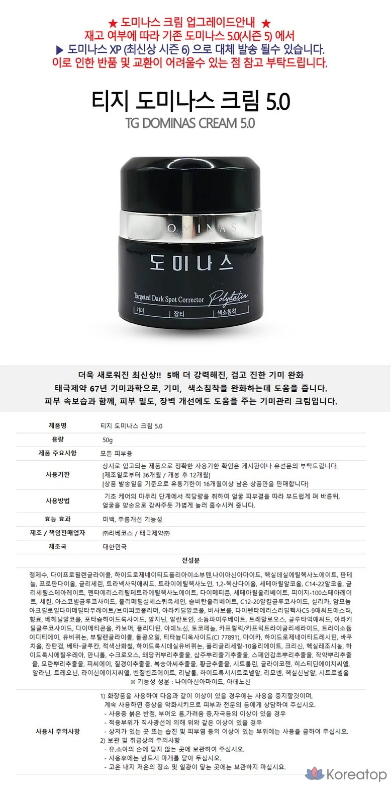 Taegeuk Pharmaceutical TG Dominas Cream 5.0 5th Generation Season 5 Tranexamic Acid Tranexan Ginseng Freckle Cream, 50g, 1 шт.