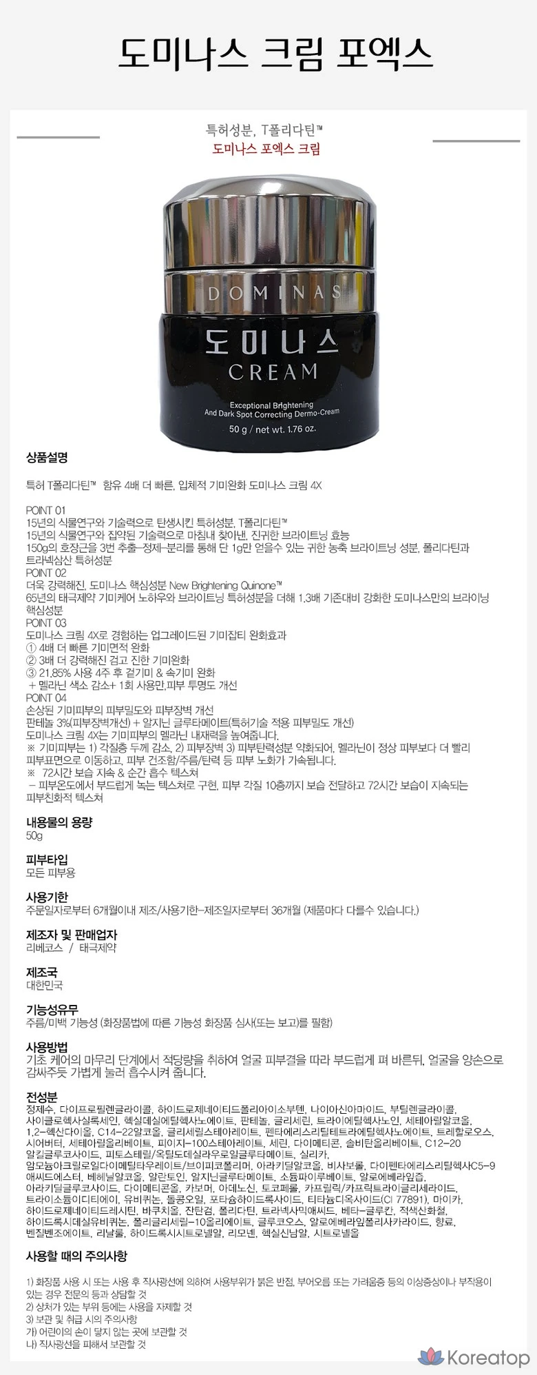 Крем Dominas TG Blemish Taiji Pharmaceutical 50 г и Маска Domina Painting Yang Mi-kyung Season 3 Tea Tji RX от веснушек и меланина