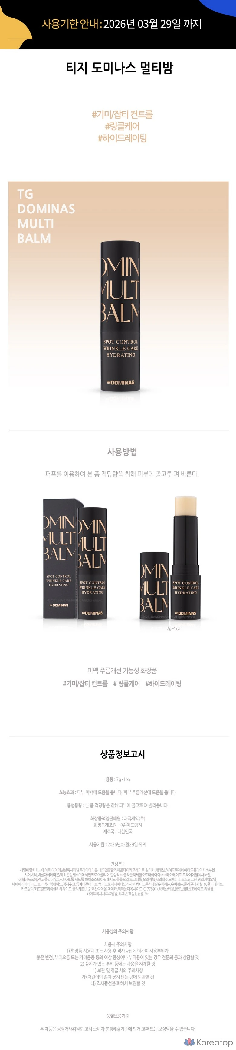 Многофункциональный бальзам для губ Tiji Dominas Multi-Balm Gimistic, 7 г, 1 шт.