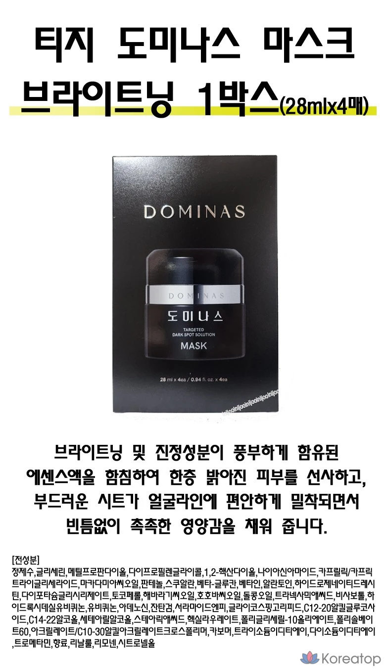 Набор осветляющих масок для лица Tiji Dominas, 6 сезон, 1 коробка (28 мл x 4 листа), 1 шт., 4 штуки.