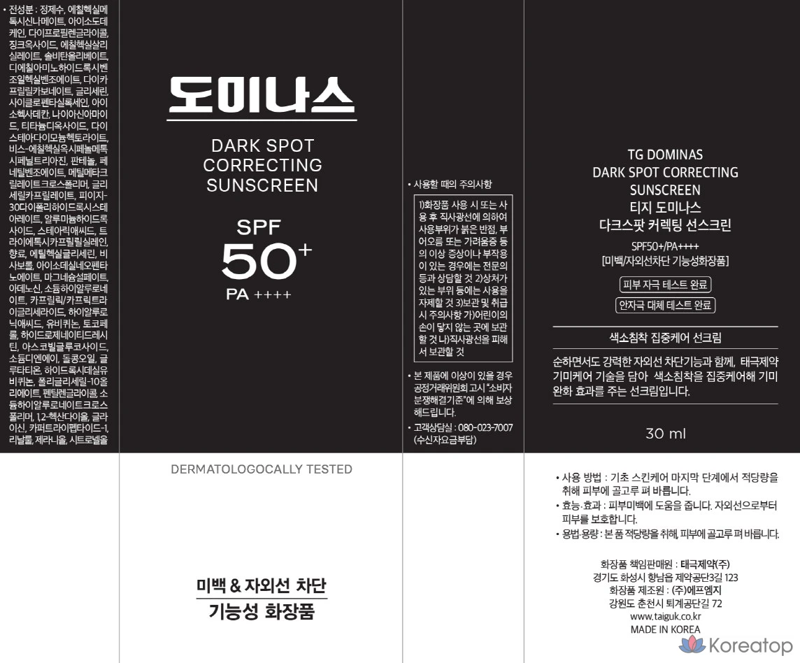 Солнцезащитный крем Dominas для коррекции пигментных пятен SPF50+ PA++++, 1 шт., 30 мл