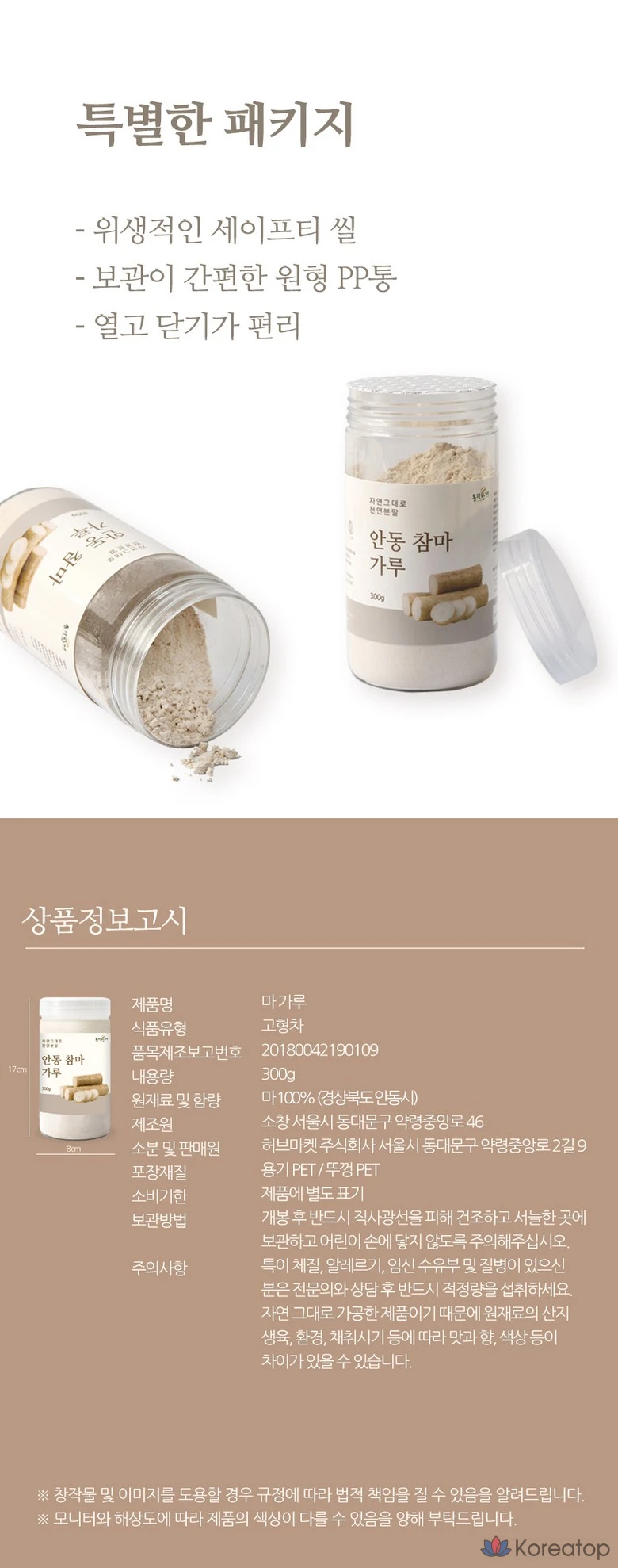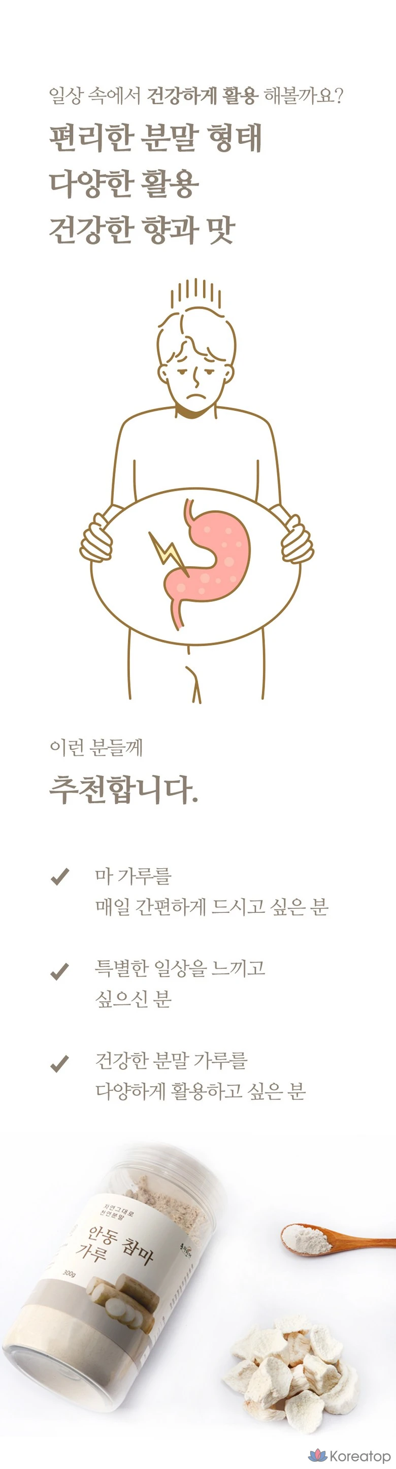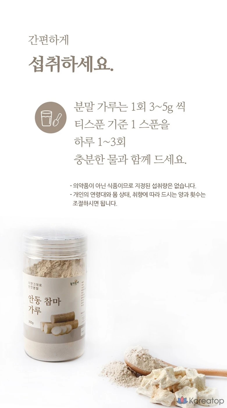 Премиальный порошок ямса Donguihanjae из региона Andong — это натуральный продукт, который станет отличным дополнением к вашему рациону. Он изготовлен из 100% ямса, что гарантирует высокое качество и насыщенный вкус. Порошок идеально подходит для приготовления различных блюд, добавляя им уникальный аромат и пользу. Упаковка весом 300 г удобна для хранения и использования. 🥄