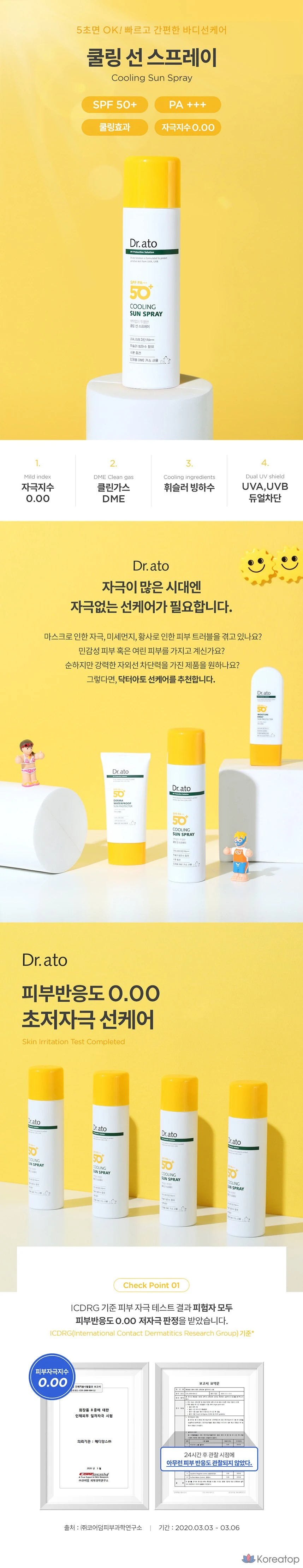 Солнцезащитный спрей Dr. Ato Cooling Sun Spray SPF50+ PA+++, 150 мл, 1 шт.