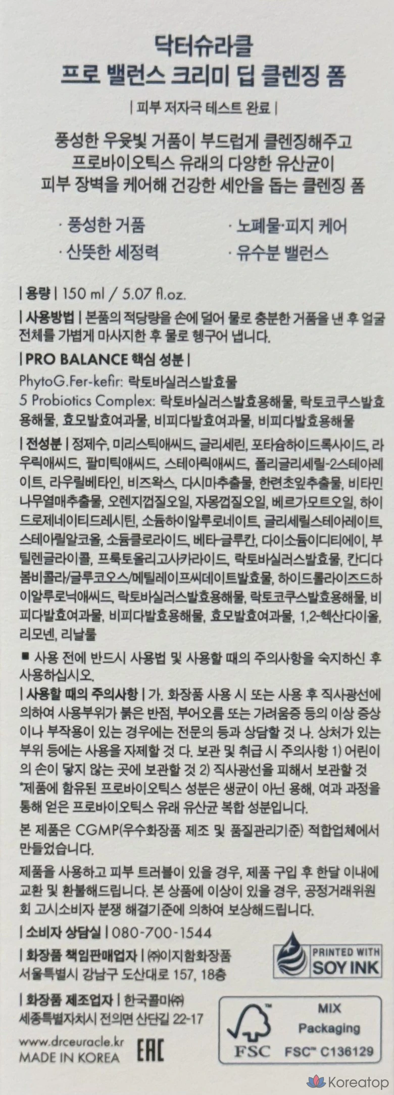 Очищающая пенка Dr. Ceuracle Pro Balance Creamy Cleansing Foam, 1 шт., 150 мл