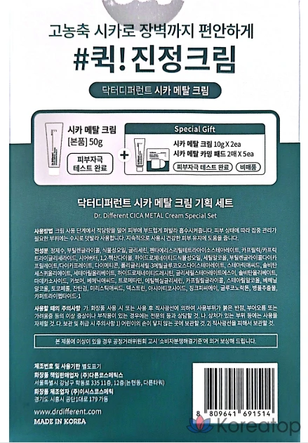 Набор Dr. Different Cica Metal Cream (основной продукт 50 г + мини-крем 10 г x 2 шт. + подушечки 10 шт., 1 комплект)