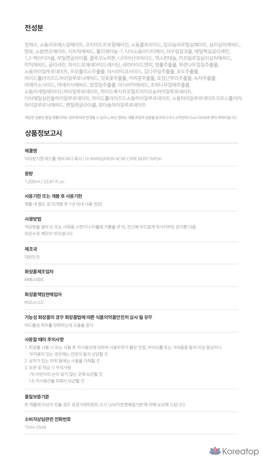 Dr. Banggiwon Acne Care гель для душа, 1 шт., 1 л