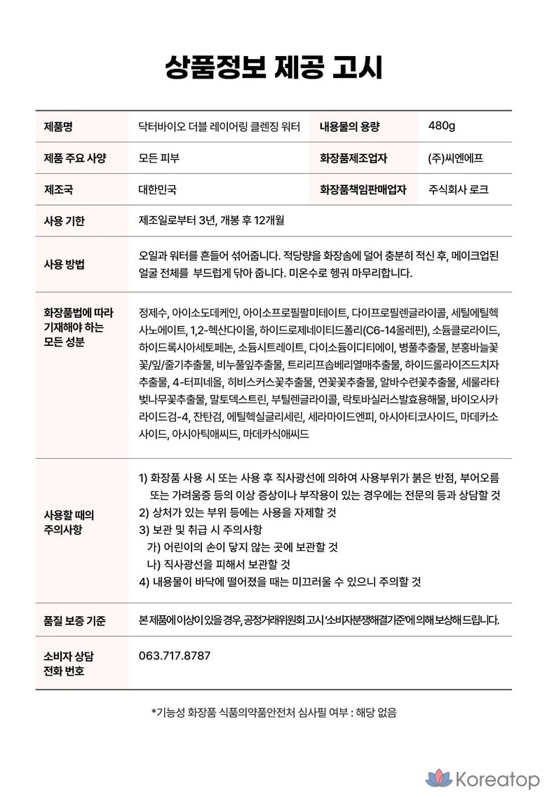 Очищающая вода Dr. Bio Double Layering, 480 г, 1 шт.