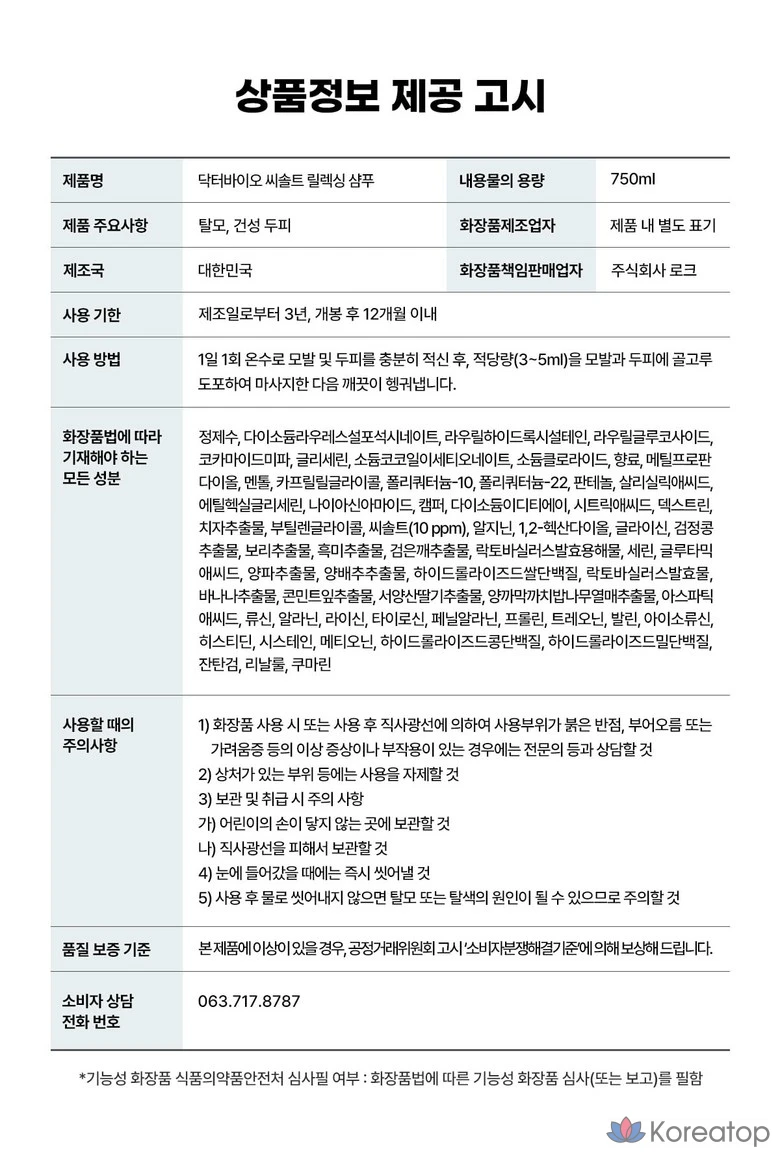 Шампунь Dr. Bio с морской солью для расслабления и борьбы с выпадением волос, 750 мл, 1 шт.