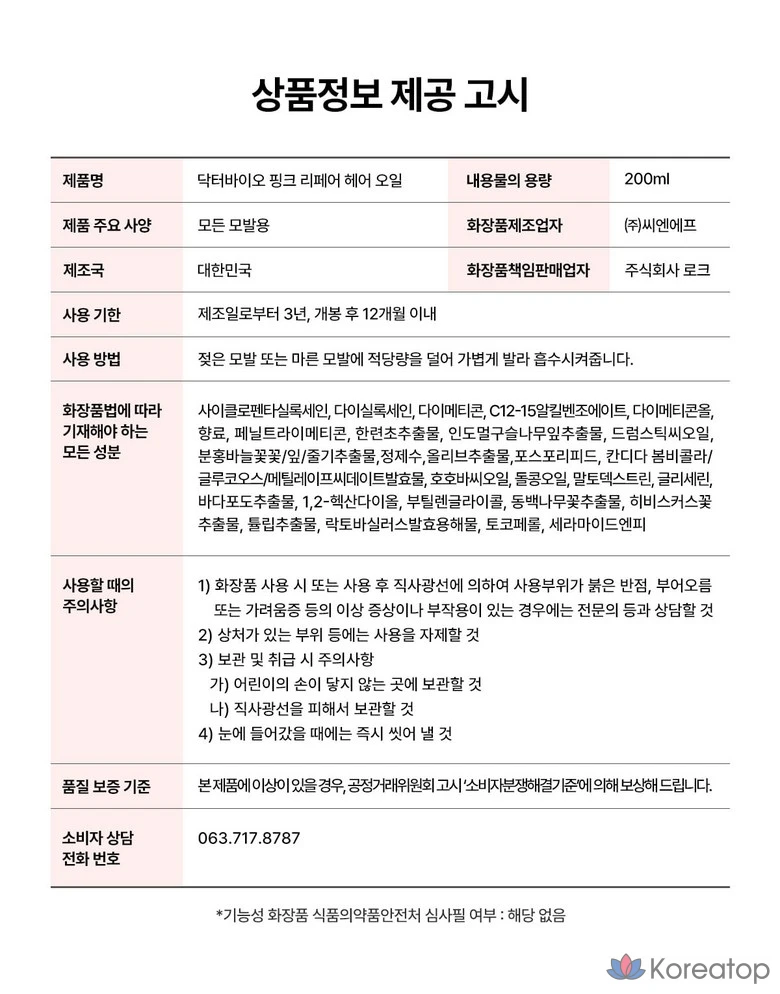 Сыворотка-масло для волос Dr. Bio Pink Repair, 200 мл, 1 шт.