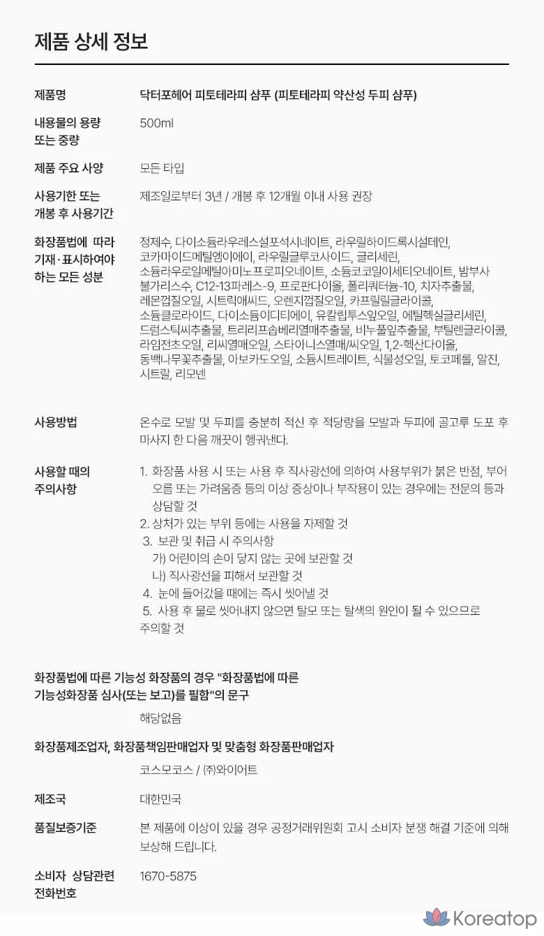 Мягкокислотный шампунь для кожи головы Doctor For Hair Phytotherapy, 500 мл, 1 шт.