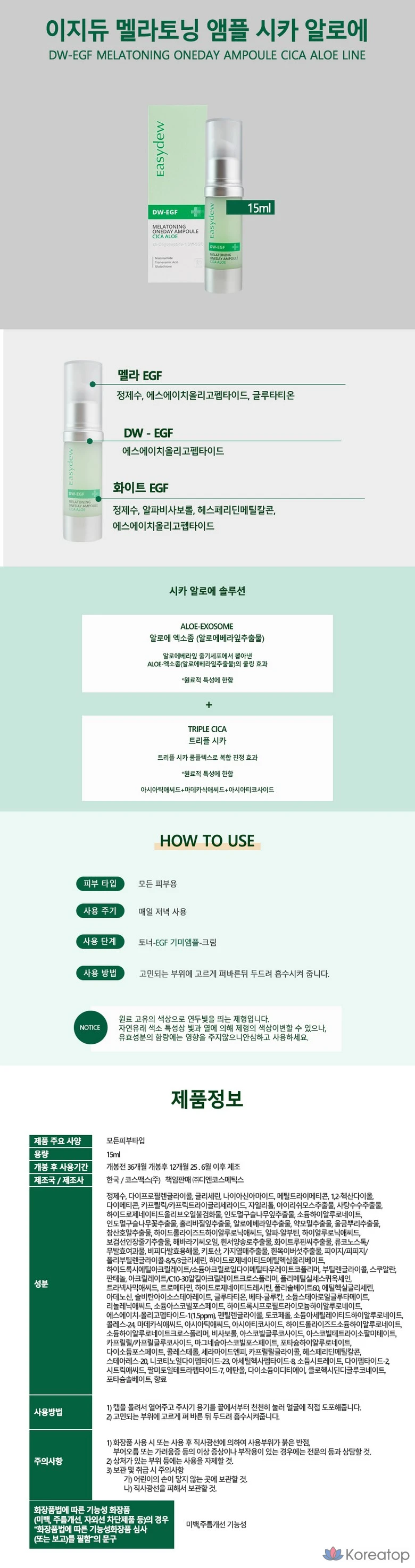 Daewoong Pharmaceutical Easydew EGF Melatoning One-Day Ampoule Cica Aloe, 1 шт., 15 мл