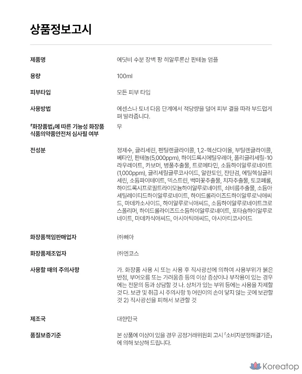Edit.B Moisture Barrier Pang Ампула с гиалуроновой кислотой и пантенолом, 1 шт., 100 мл