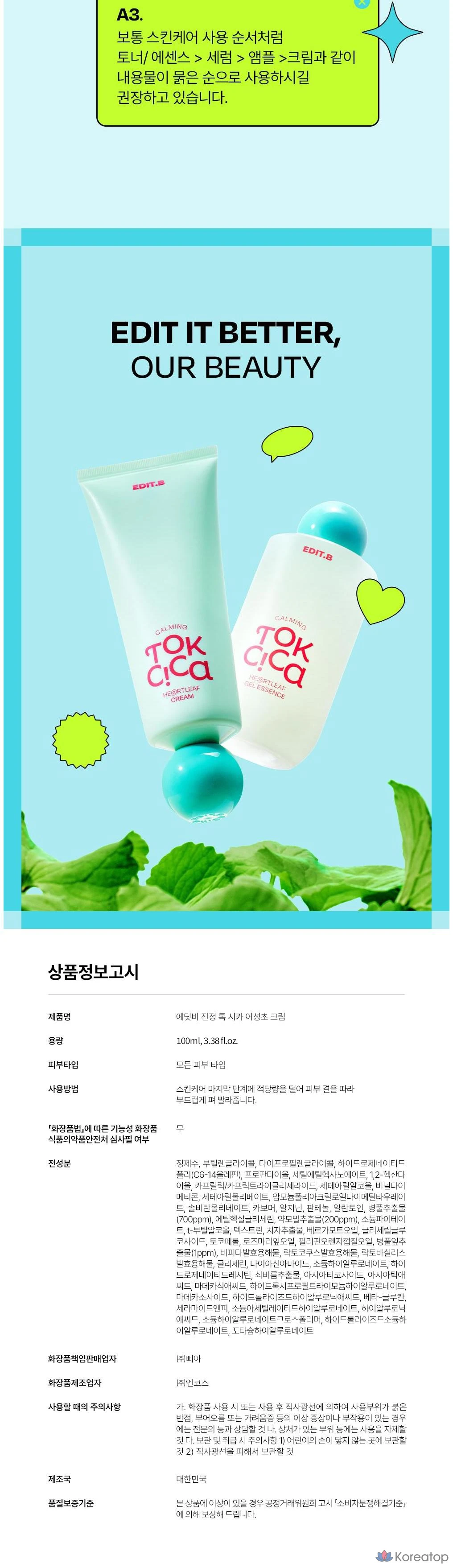 Крем Edit.B Jinjeong Toxic Cica Mugwort, 1 шт., 100 мл