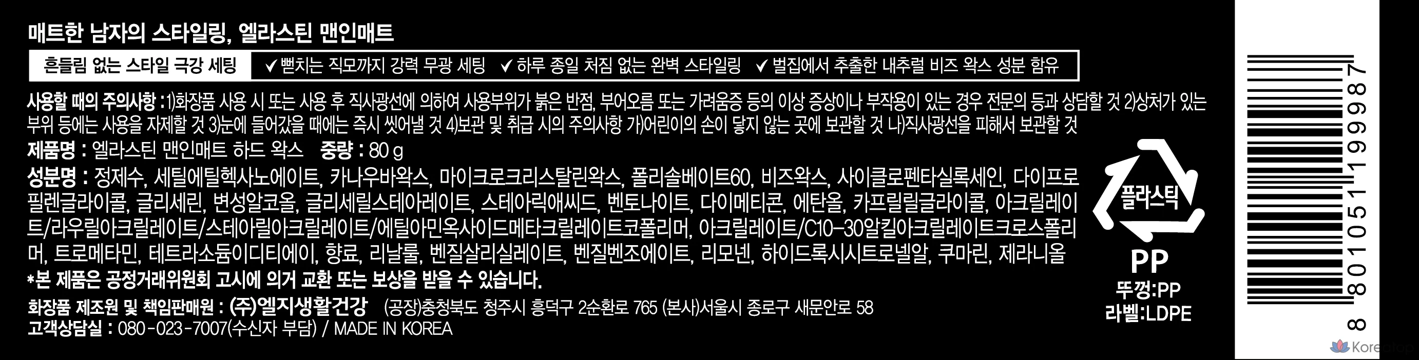 Эластин для мужчин, матовый твердый воск для волос, 80 г, 1 шт.