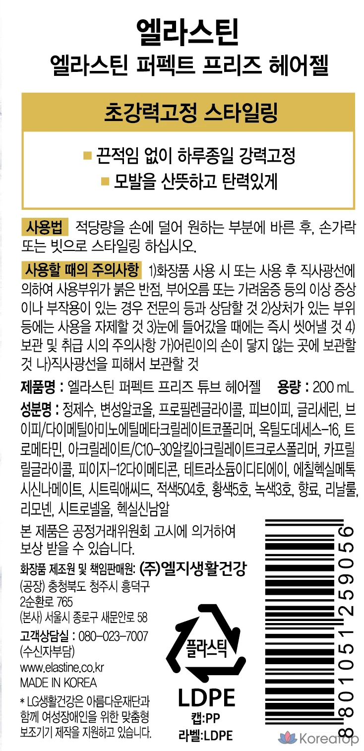 Гель для волос Elastine Perfect Freeze, тюбик, 200 мл, 1 шт.