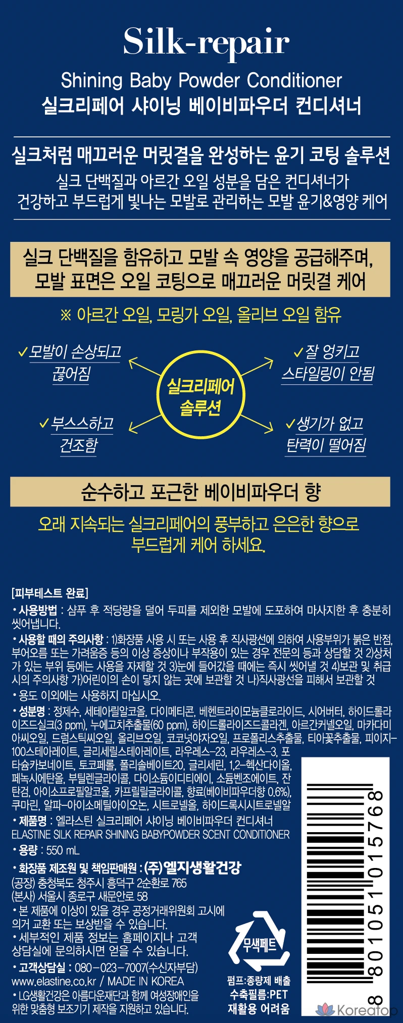 Кондиционер для восстановления волос Elastine Silk Repair с ароматом детской присыпки, 550 мл, 1 шт.