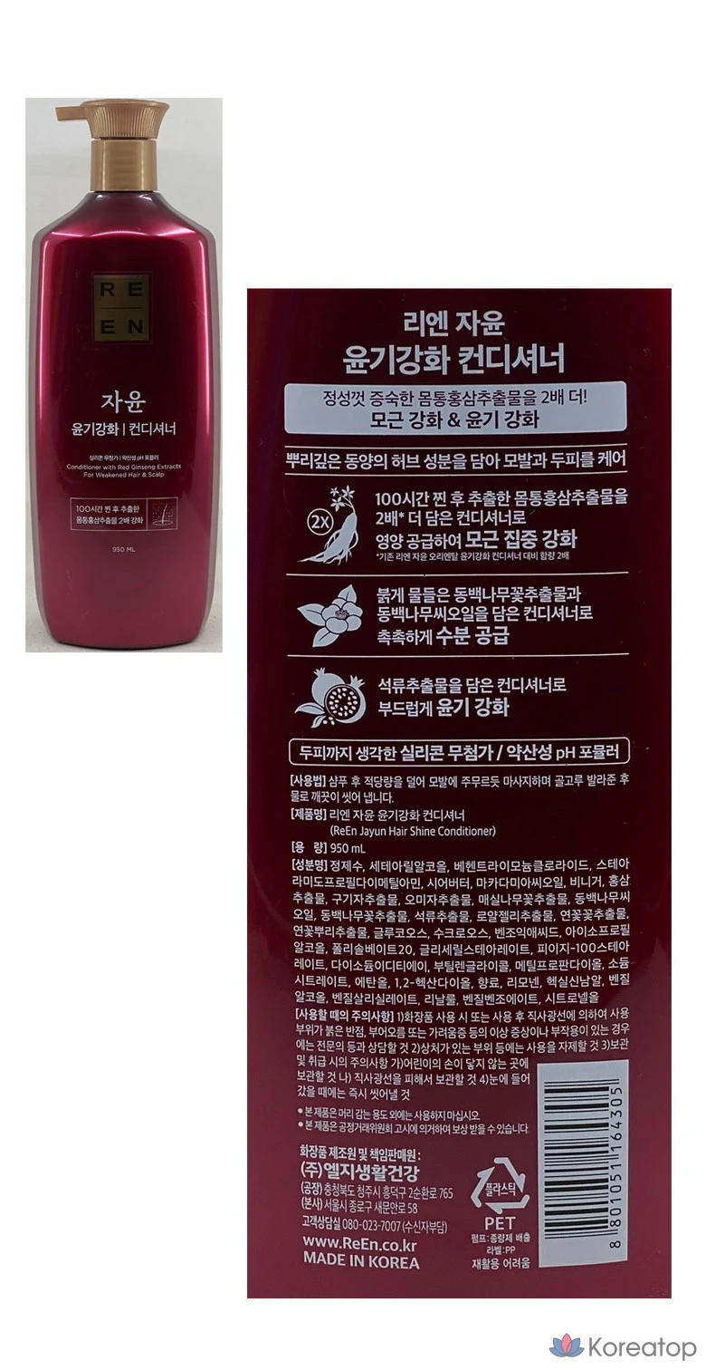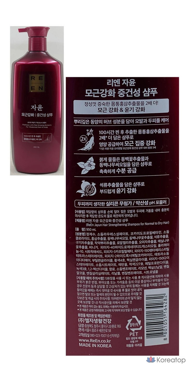 Lien Jayoon Шампунь для укрепления корней для нормальных и сухих волос 950 мл + Кондиционер для придания блеска 950 мл, 1 шт., 950 мл