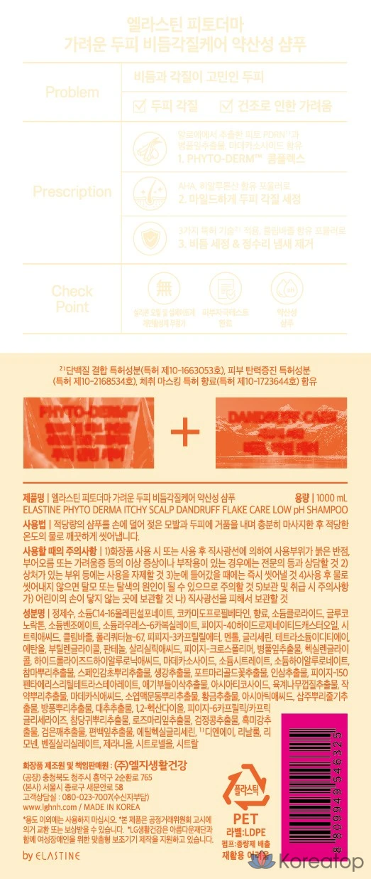 Отшелушивающий шампунь Elastine Phytoderma от зуда кожи головы и перхоти, с мягкой кислинкой и ароматом белых цветов, 1 л, 1 шт.