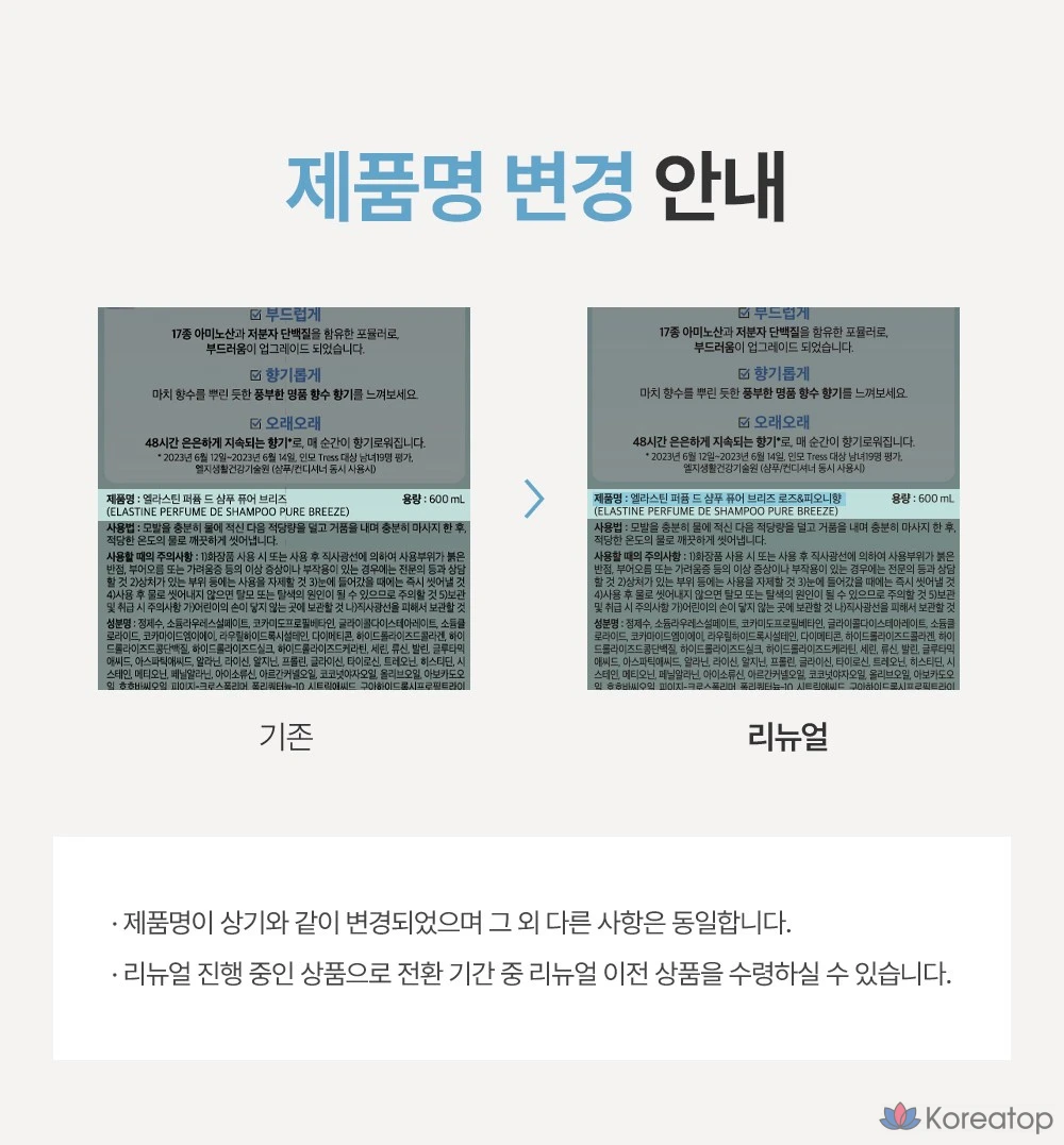 Парфюмированный шампунь Elastine Pure Breeze с ароматом розы и пиона, 600 мл, 1 шт.