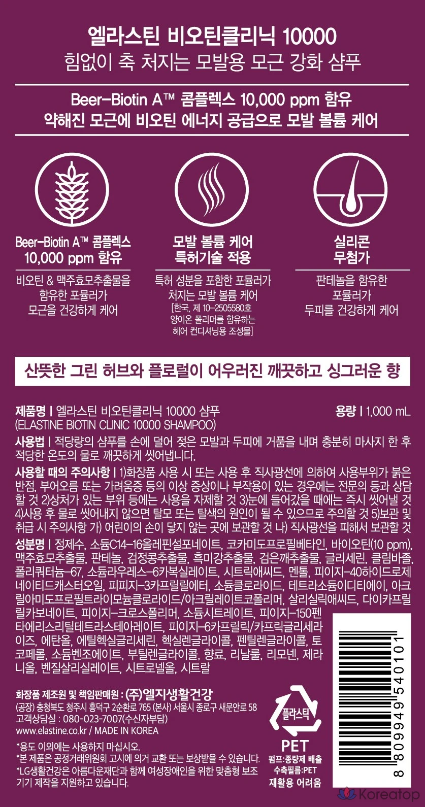 Шампунь Elastine Biotin Clinic с пивными дрожжами, 1 л, 1 шт.