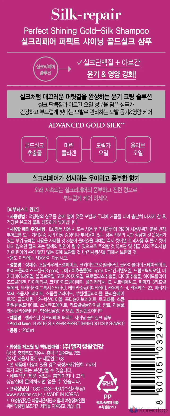 Шампунь Elastine Silk Repair Perfect Shining Gold Silk, 400 мл, 1 шт.