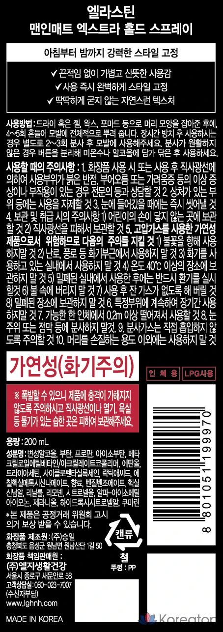 Спрей-воск для волос Elastine Men с матовой фиксацией, 200 мл, 1 шт.