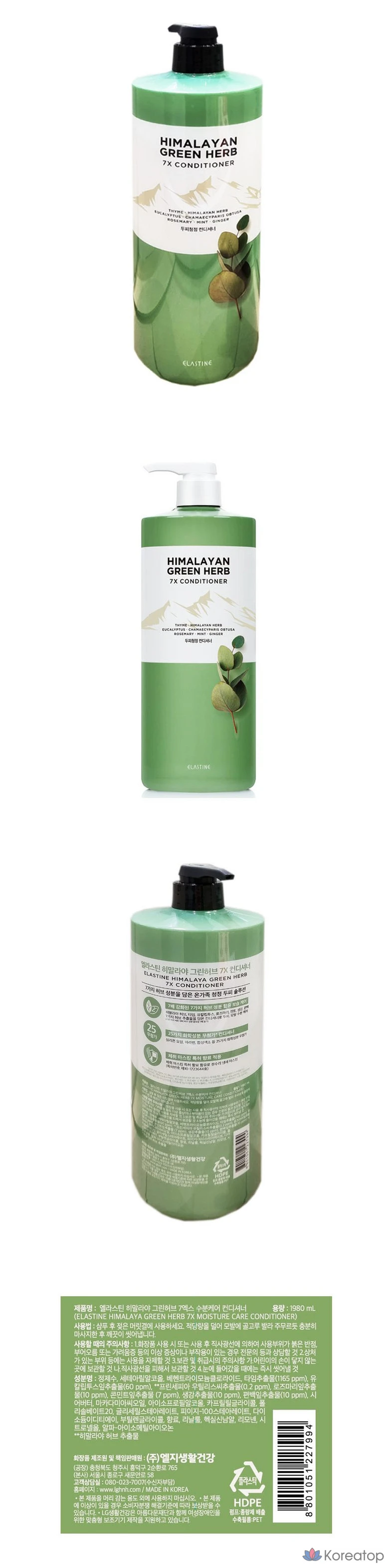 Увлажняющий кондиционер Elastine Himalaya Green Herb 7X, 1980 мл, 1 шт., 1,98 л