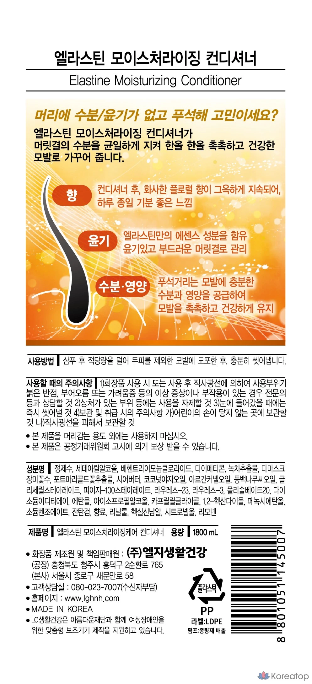 Увлажняющий кондиционер Elastine, 1,8 л, 1 шт.