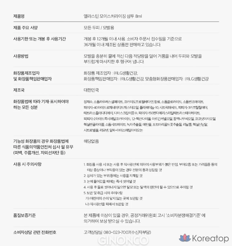 Увлажняющий одноразовый шампунь Elastine, 1 шт., 8 мл