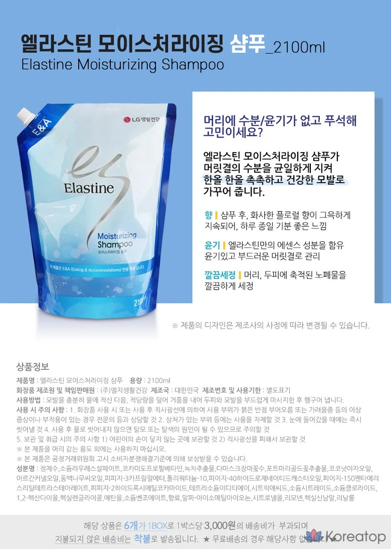 Увлажняющий шампунь Elastine, сменный блок большого объема, 2,1 л, 1 шт.