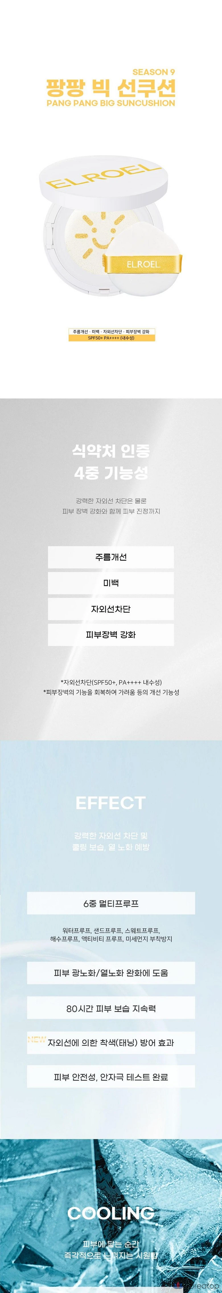 Кушон ELROEL Sun Cushion S9 2025 Pang Pang Big Sun Cushion (основа + сменный блок), 50 г, 1 шт.