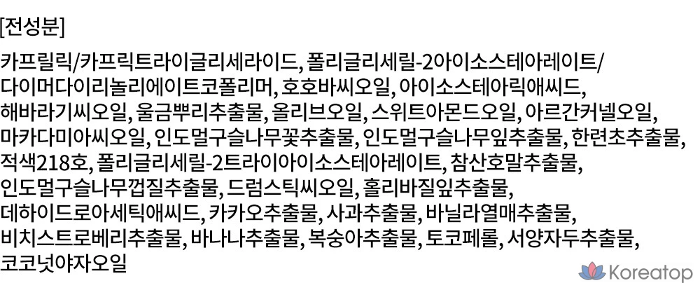 Комплекс растительных масел (жожоба, подсолнечник, сладкий миндаль, олива, макадамия, аргана, моринга), токоферол (витамин Е), pH-реактивный пигмент (CI 45410:1)