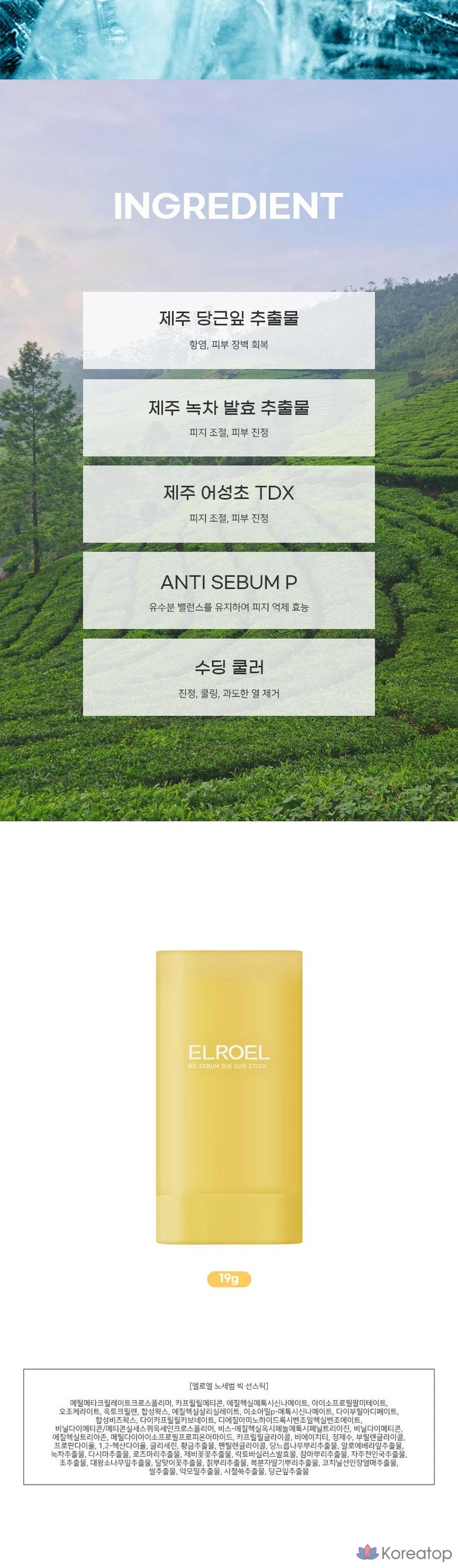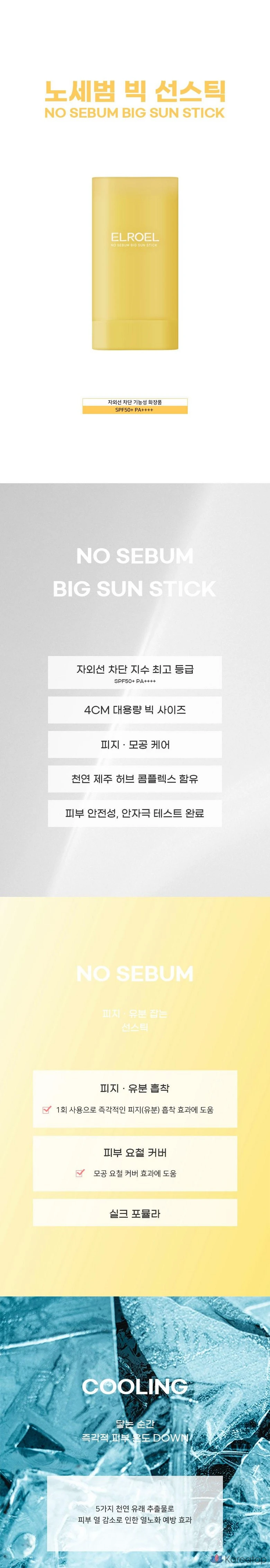 Забудьте о жирном блеске и неудобном нанесении санскрина! ELROEL No Sebum Big Sun Stick — это ваш идеальный защитник от солнца в формате большого удобного стика. Его шелковистая, нелипкая текстура скользит по коже, оставляя бархатный матовый финиш, словно вы воспользовались праймером. Формула на основе современных химических фильтров и себорегулирующих компонентов мгновенно абсорбирует излишки кожного сала, визуально сглаживает поры и выравнивает текстуру кожи. Просто проведите стиком по лицу и телу — и вы под надежной защитой SPF50+ PA++++ без белых следов и ощущения пленки. Идеален для обновления защиты в течение дня, даже поверх макияжа.
