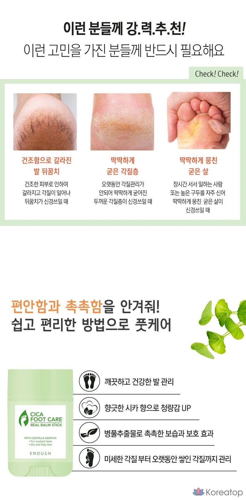 Бальзам для ухода за кожей стоп с центеллой азиатской. Формула способствует восстановлению и глубокому питанию. Удобный формат стика для точечного нанесения. Подходит для ежедневного ухода за сухими и обветренными участками. 🦶
