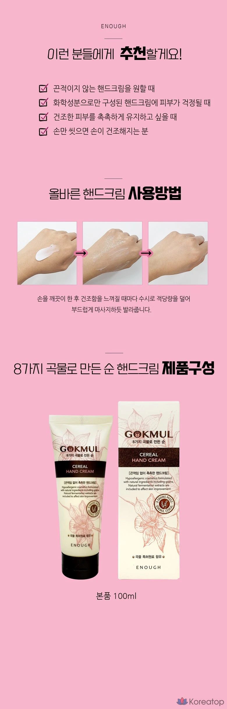 Крем для рук Enough 8 Grain Cereal Pure Hand Cream, 100 мл, 1 шт.