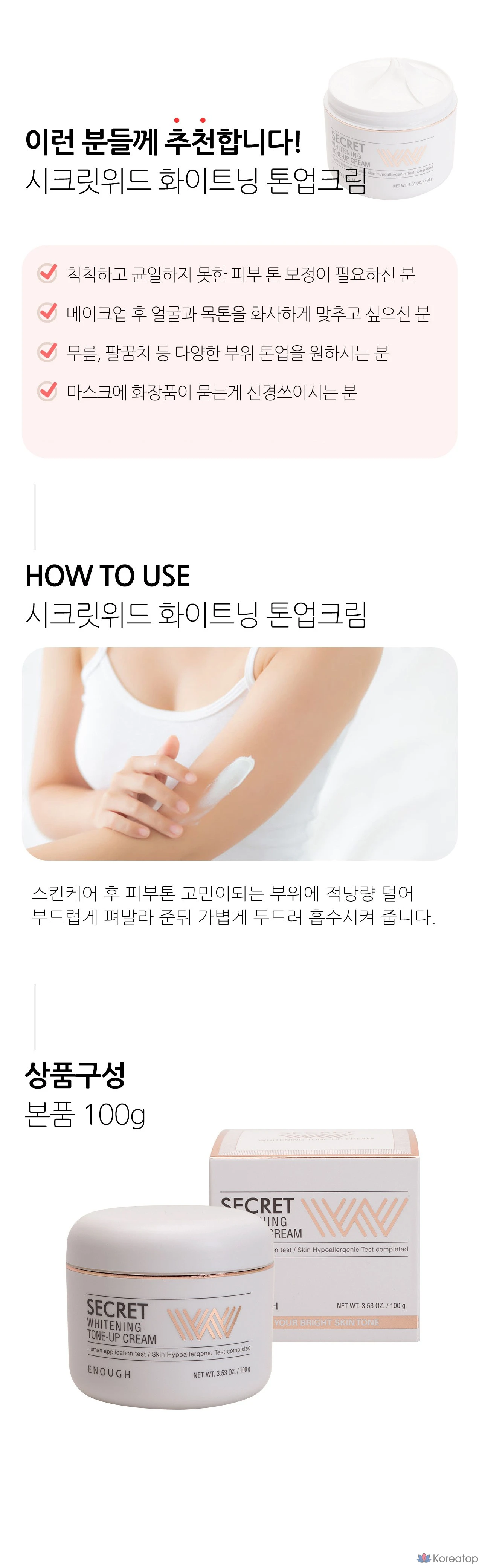 Осветляющий выравнивающий тон кожи крем Enough Secret, 100 г, 1 шт.