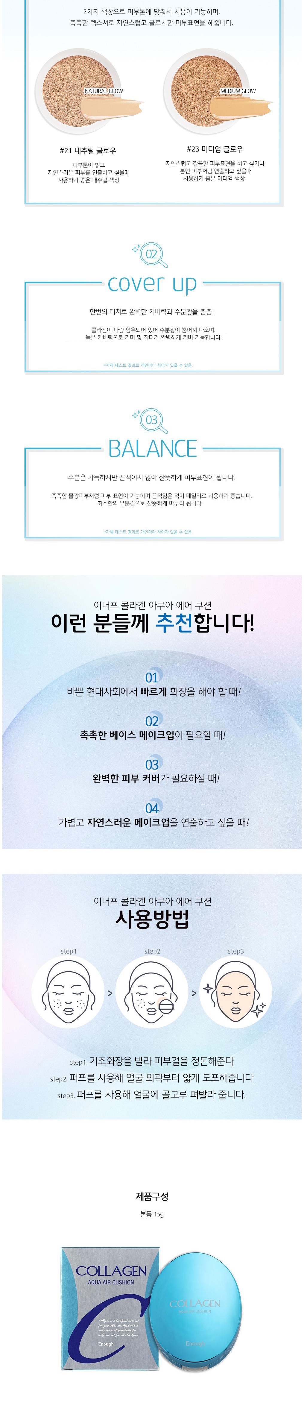Тональный крем-кушон Enough Collagen Aqua Air Cushion Foundation, 15 г, оттенок 21 Natural Glow, 1 шт.