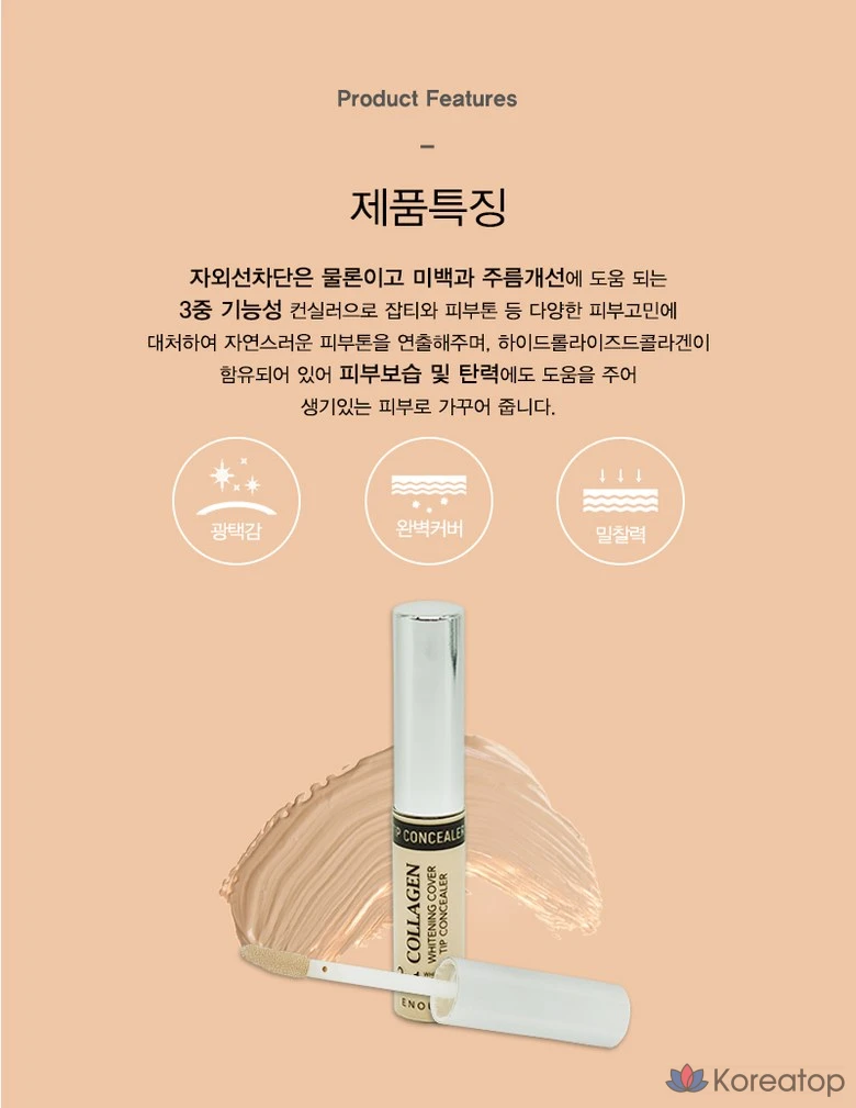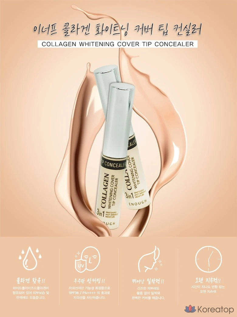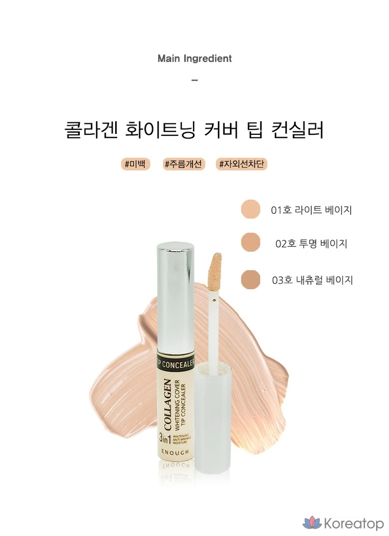 Жидкий консилер Enough Collagen Whitening Cover Tip, 9 г, № 3, натуральный бежевый, 1 шт.