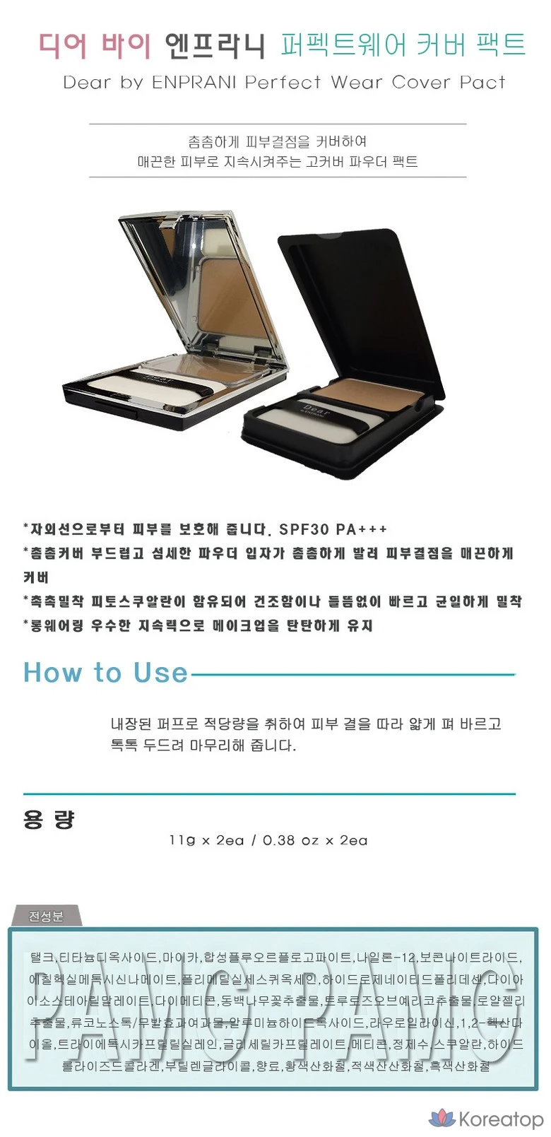 Enprani Dearby Perfect Wear Cover Pact 11 г (основной блок + сменный блок), 1 шт.