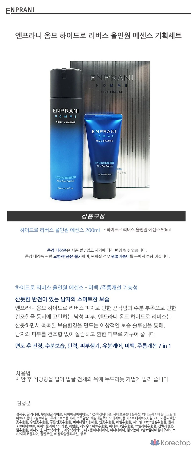 Enprani Homme Hydro All-in-One Essence 200 мл + 50 мл, 1 шт.
