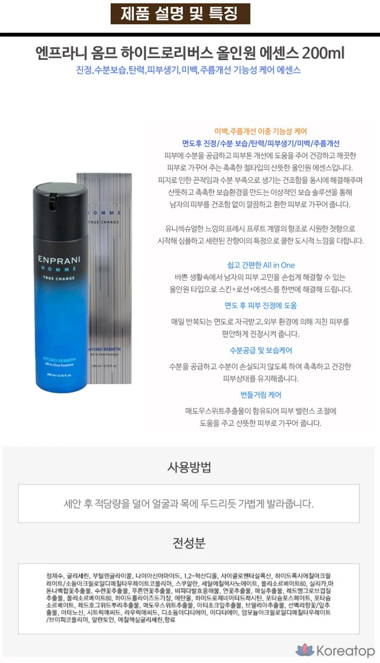 Enprani Homme Hydro Reverse All-in-One Essence, 200 мл, 1 шт.