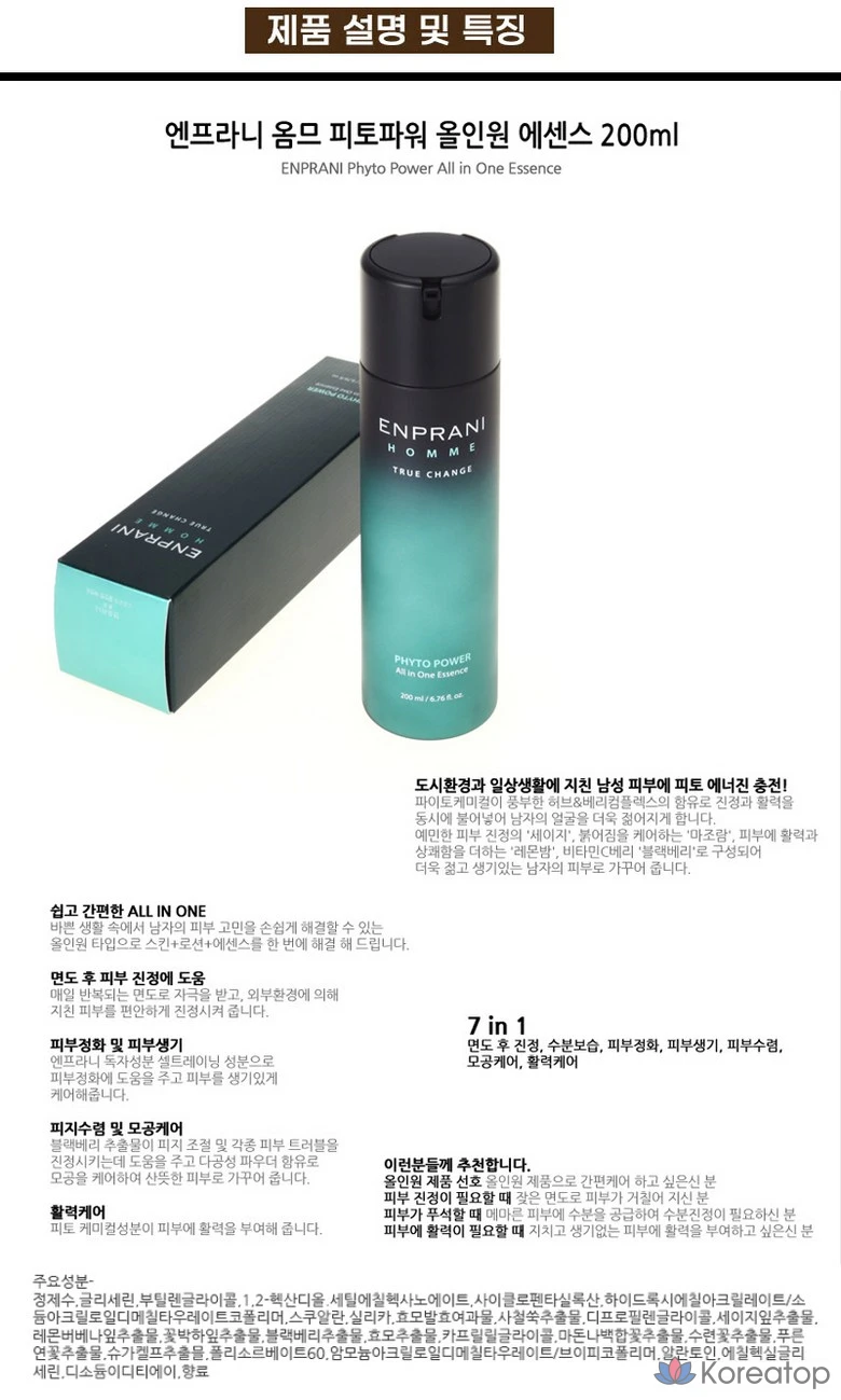 Enprani Homme Phytopower All-in-One Essence, 200 мл, 1 шт.