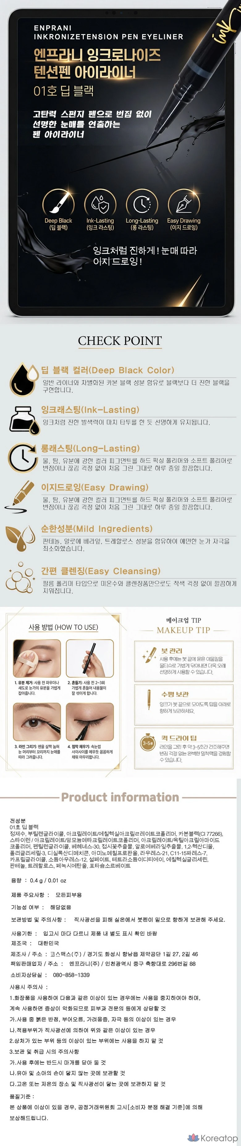Подводка для глаз Enprani Inkronize Tension Pen Eyeliner 01 Deep Black, 1 шт.