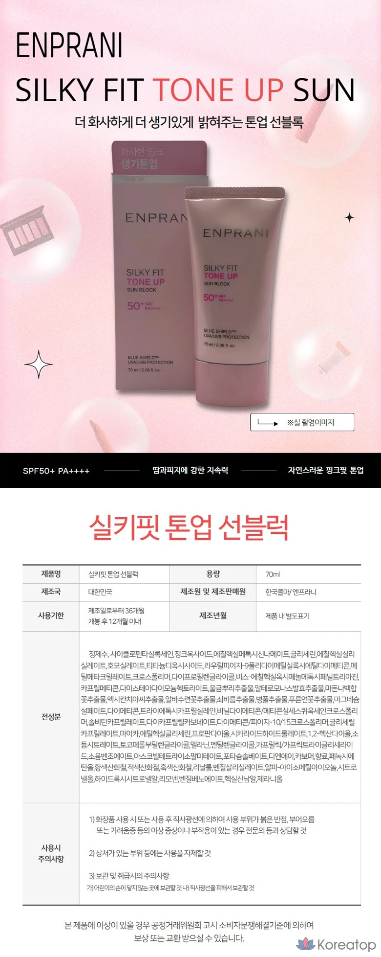 Солнцезащитный крем Enprani Silky Fit, 70 мл, 1 шт.