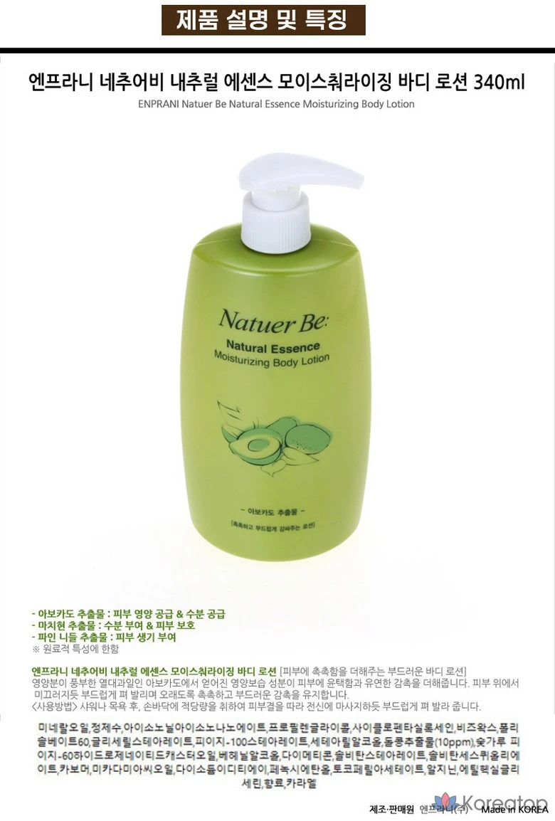 Увлажняющий лосьон для тела Enprani Natural Essence, 340 мл, 1 шт.