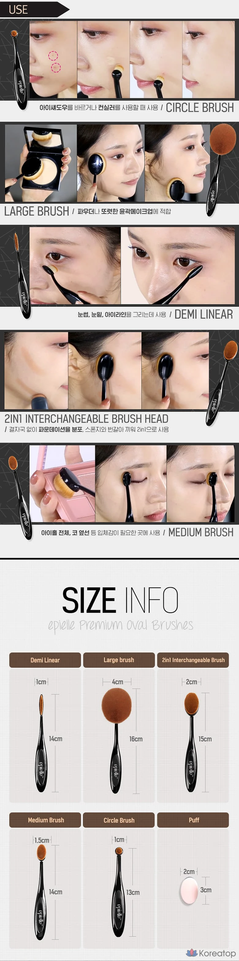 Набор из 5 овальных кистей Epielle, 1 шт.