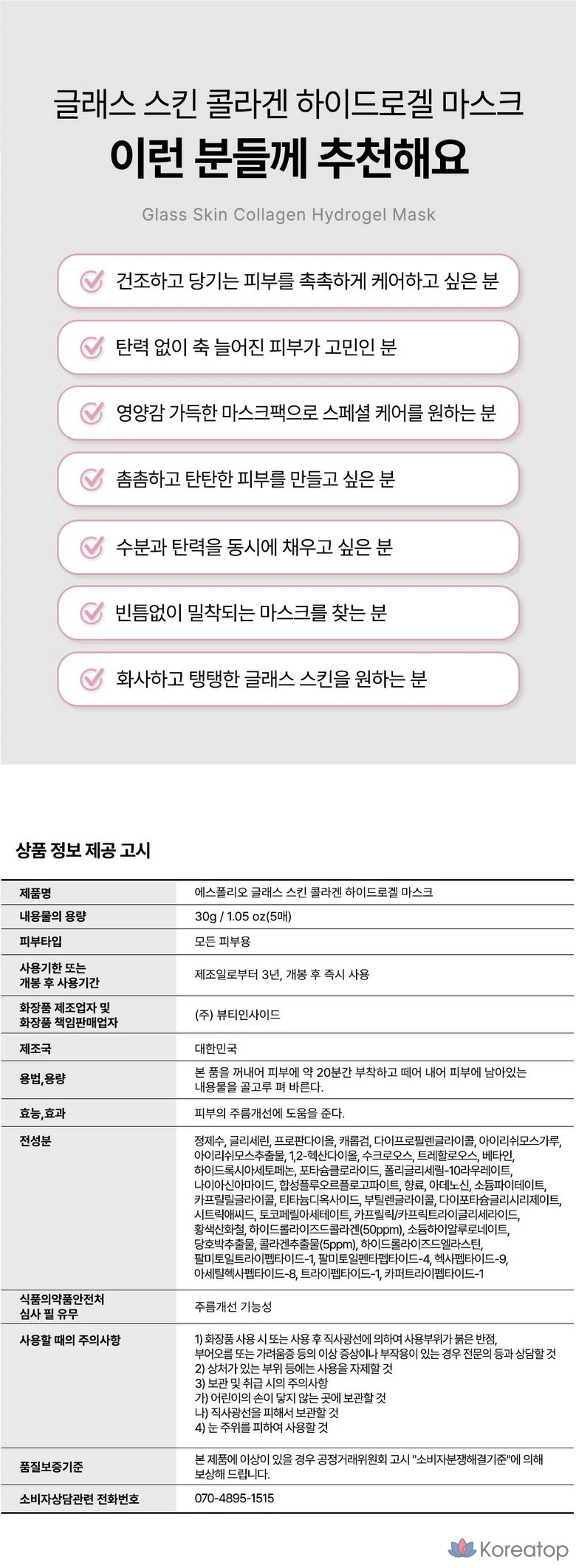 Гидрогелевая маска с коллагеном для моментального увлажнения и подтяжки контуров лица. Формула способствует улучшению упругости кожи, создавая эффект сияющего стеклянного лица. Идеальна для экспресс-ухода и восстановления кожи. 🧖♀️