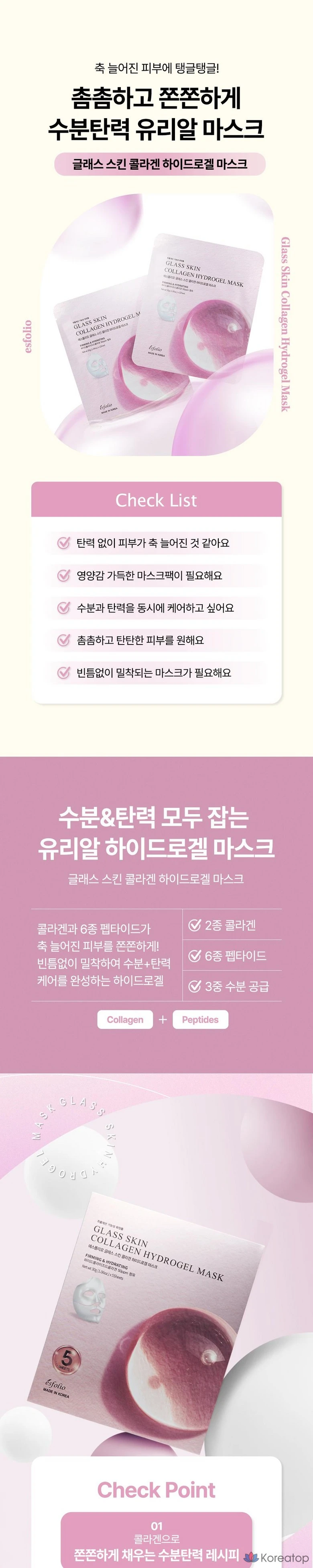 Гидрогелевая коллагеновая маска Esfolio Glass Skin для повышения эластичности и лифтинга кожи, 1 упаковка, 5 штук.