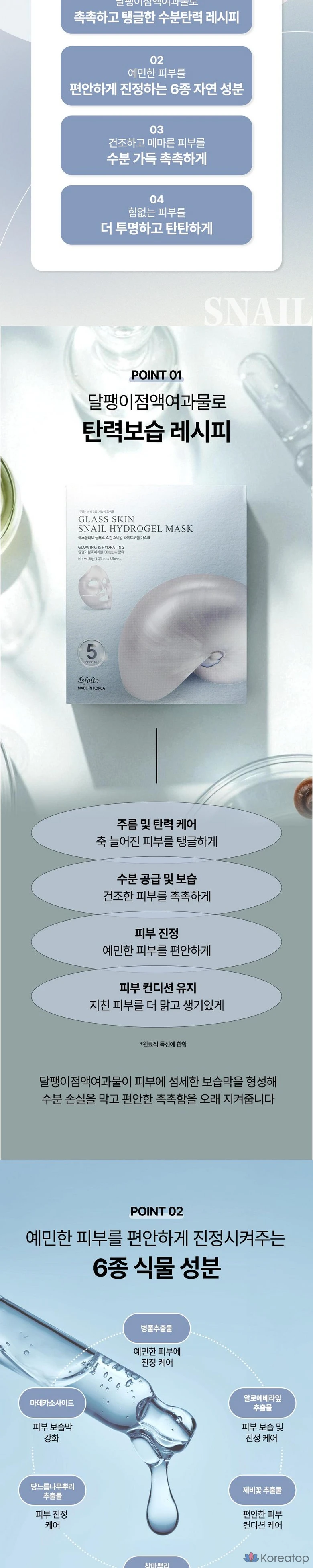 Гидрогелевые маски Esfolio Glass Skin Snail, набор из 5 штук, увлажняющие и разглаживающие морщины, 1 упаковка, 5 штук