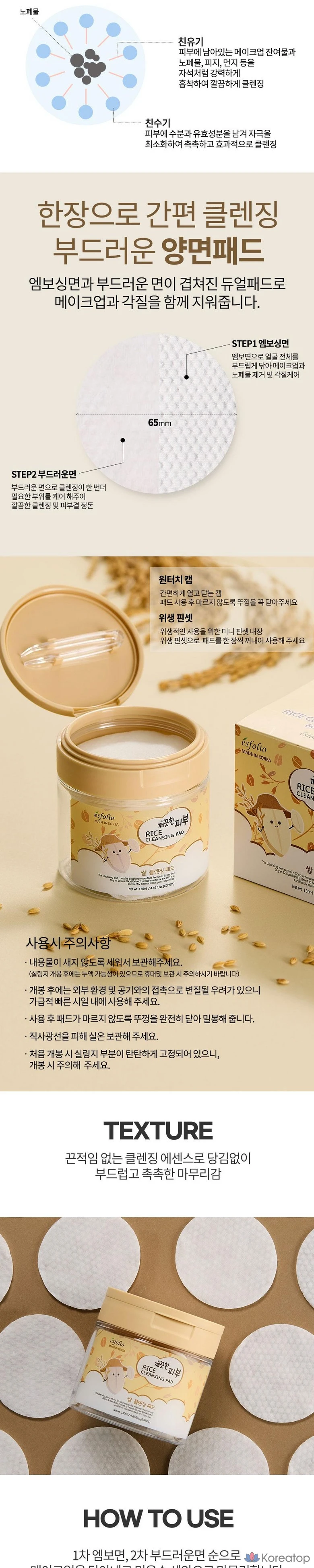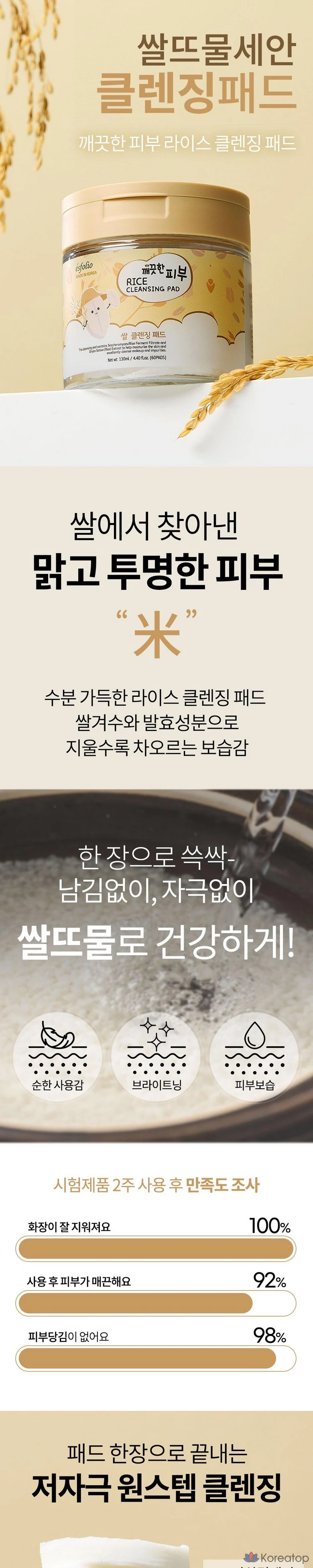 Рисовые очищающие подушечки Esfolio, Средней интенсивности, Очищение рисовой водой, 1 упаковка, 60 листов